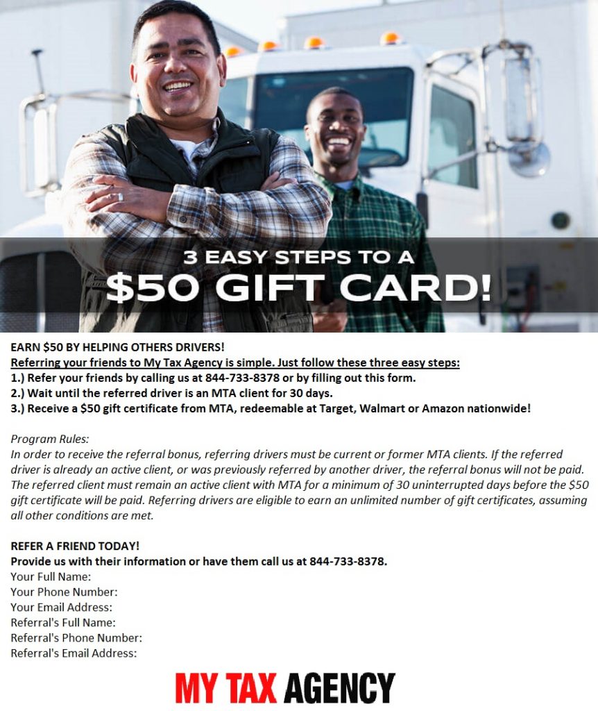 My Tax Agency is unique because we are much more than just a tax and accounting firm. We can help you take care of all your trucking business needs including sorting and filing paperwork and receipts, keeping track of your expenses and revenue, creating a budget and profit plan, preparing and filing taxes, and providing unlimited consulting from trucking industry experts. This will allow you to spend less time worrying about your business, and more time driving.